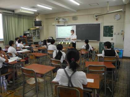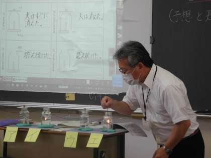 6月8日(月)新型コロナウイルス感染症防止のため、子どもたちのグループ活動を控えるようにしています。理科の授業では、指導者が子どもたちの前で実験をすすめます。学習課題について子どもたちは自分の考えを発表し、実験を通して検証していきます。