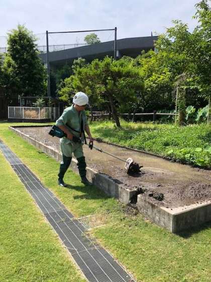 来週の5年生の田植えに備えて、暑い中、管理作業員さんがしろがきをしてくれました。