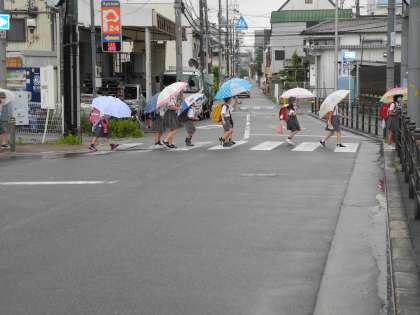 6月11日(木)今日は雨の中の登校となりました。かさをさしながら安全に気をつけて登校班で登校できました。大阪は梅雨入りしたと発表がありました。これから雨の日が続きそうです。