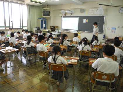 6月15日(月)2年1組では図画工作科の授業を行いました。「ふしぎなたまご」を考え、一人ひとりが自分のたまごに色をつけていきます。世界にひとつだけのたまごができてきました。