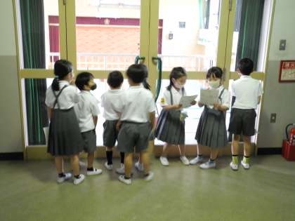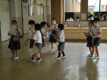 6月18日(木)1年生は、生活科で「学校たんけん」の学習をしています。今日から休み時間に自分たちで地図を見ながら教室を探しに出かけます。友だちと相談しながら、今まで行ったことのないところも探検していました。