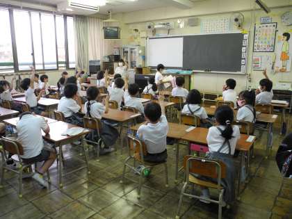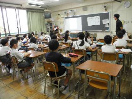 7月9日(木)集会委員が児童集会を行いました。感染症対策のため、みんなで集まって活動できないため、放送で行いました。テーマは「新しく来られた先生の3択クイズ」です。各教室では放送を聞きながら楽しく回答していました。