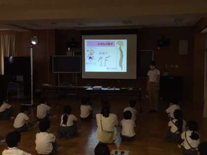 今日は、3年生の発育測定とあわせて「姿勢」についての保健指導を行いました。