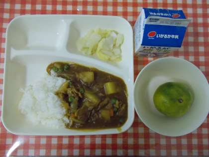 【ポークカレーライス、白菜のピクルス、みかん、牛乳】
