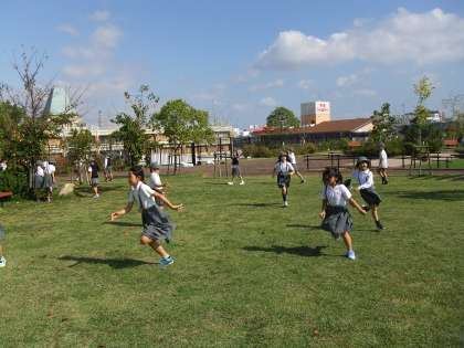 おにごっこやかくれんぼなどをして芝生の上でたっぷり遊びました。