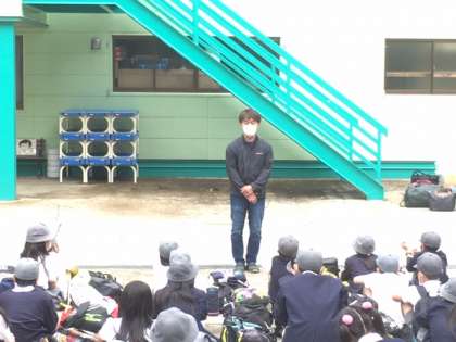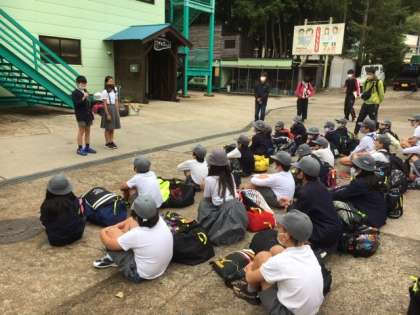 5年生の子どもたちは無事鉢伏高原に着きました。お世話になるアサヒロッジで開舎式を行いました。代表の児童から宿舎の方へごあいさつをしました。