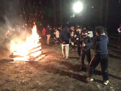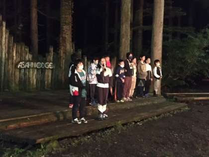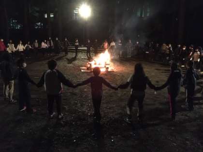 夕食後はキャンプファイヤーです。担当の子どもたちが中心となって進行しました。ファイヤーを囲みながら楽しい時間を過ごしました。