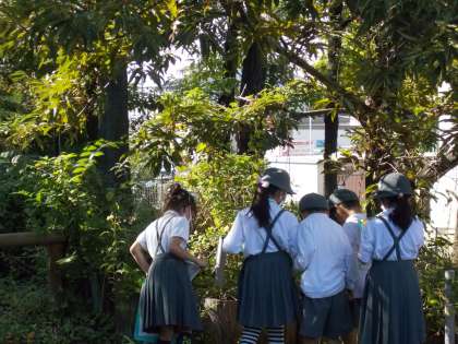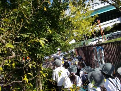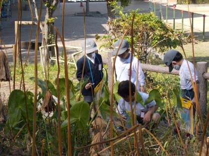 すくすくの森に行って虫や植物を見つけ、その特徴(色、形、大きさ等)をメモし、そこから文章を作る学習です。ひらがなに続き、カタカナを学習し終わった1年生はそれらを使って文章を書く段階に入りました。