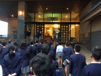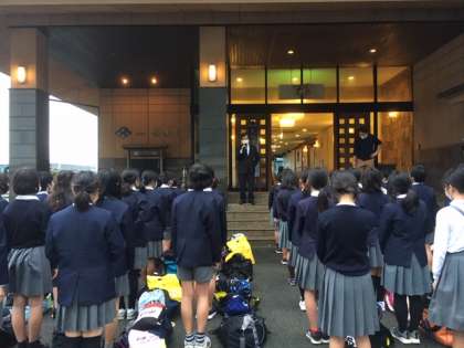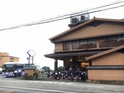 スペイン村では活動中雨は降らず、アトラクションを楽しむことができました。6年生の子どもたちは宿泊地のホテルメ「湯楽々」に無事到着しました。開舎式では代表児童から宿舎の方にごあいさつをしました。