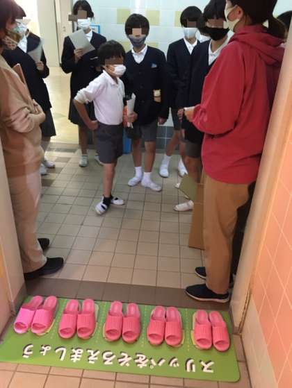 11月5日(木)の委員会の時間に、保健委員会でトイレのスリッパの設置をしました。
