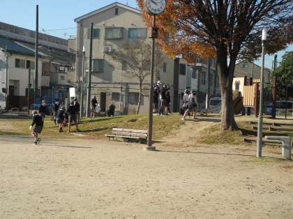 秋晴れの中、4・5年生は中徳公園やその周辺、6年生は中環沿いの歩道に分かれ清掃しました。