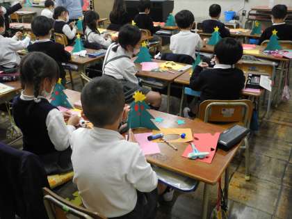クリスマスに向けてツリーの工作に取り組みました。