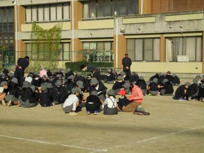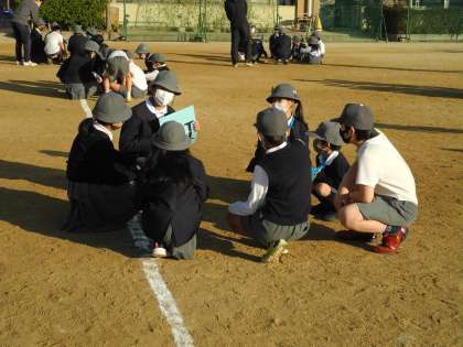 12月3日(木)、運動場でなかよし集会を行いました。なかよし班にわかれて12月5日(土)の土曜授業で実施する「まったまつり」について話し合いました。