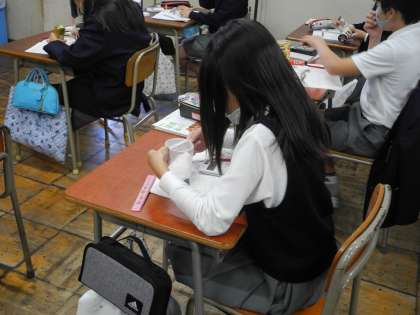 それぞれの家庭から持ってきた「円」をいくつか測定し、共通する数値から円周率について考えました。