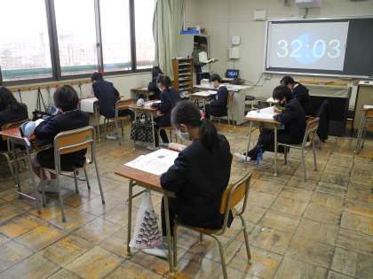 1月12日(火)、3年生から6年生の児童は、「大阪市小学校学力経年調査(第1日目)」に臨みました。今日は、国語科と社会科です。みんな真剣に取り組んでいました。