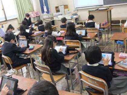 ログインもスムーズにできるようになり、友だちが取り組んでいる内容を見て、「自分もしてみたい!!」という気持ちが出てくると、子どもたち同士で教えあう姿が見られました。