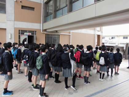 六年生は神戸どうぶつ王国へ卒業遠足に行きました。出発式を行い、バスに乗ってどうぶつ王国に向かいます。到着後、消毒をしてから、班ごとに見学スタートです!