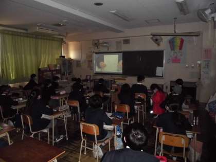 集会委員が一生懸命に考えた間違い探しと脳トレクイズに、全校児童が夢中で見ていました。