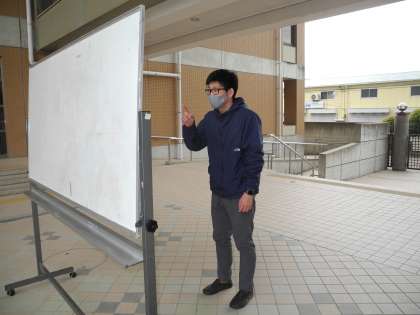自転車の方は、運動場に白線を引いていますので、そこに置いてください。大屋根の下でクラス分け名簿を貼っています。クラスと出席番号を確かめてください。名簿は個人情報となるので撮影はしないでください。