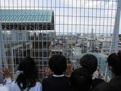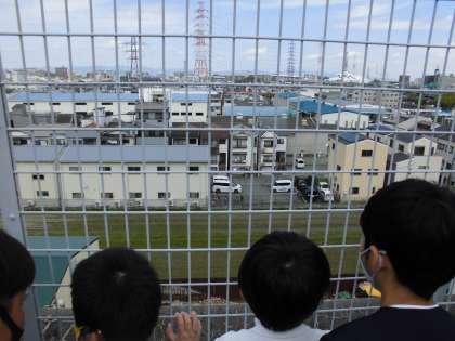 初めて学校の屋上に行き、それぞれの方位から町の様子を見てみました。