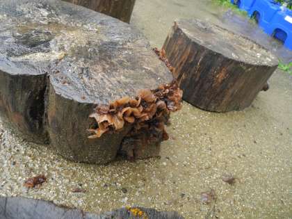今年は早い梅雨入りとなりました。運動場にある切り株に自生しているキクラゲもうれしそうです。さっそく今日も、登校時間から激しい雨が降っていましたが、くつがびしょびしょになると、靴下も濡れます。足ふきタオルと替えの靴下と持たせていただくと、その日の学校生活が少しだけ快適になります。