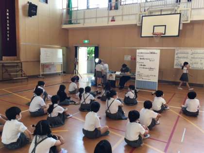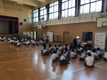 講堂で、換気をし、間隔をあけて3クラスずつ歯科検診を行いました。歯科医の先生方はフェイスシールドを着用して一人ひとり丁寧に診てくださいました。