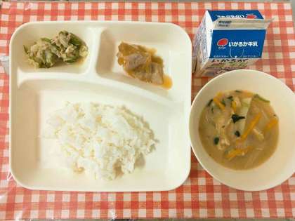 【鶏肉のおろしじょうゆかけ、みそ汁、野菜いため、ごはん、牛乳】