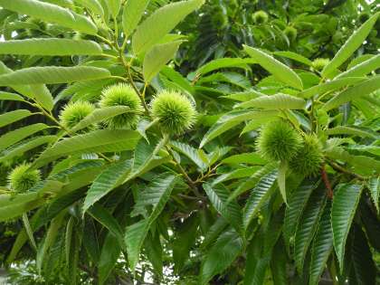 自然がいっぱいの「すくすくの森」では、現在、きれいな緑色の栗の実が育っています。摘果しないので毎年小さな実がたくさんできます。