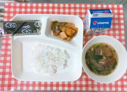 【酢豚、中華みそスープ、焼きのり、ごはん、牛乳】