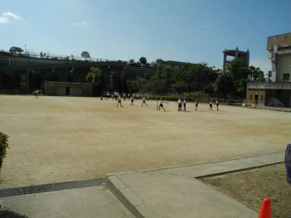 夏がもどってきたかのような気候が続いていますが、子どもたちは元気です。3年生がTボールをしていました。