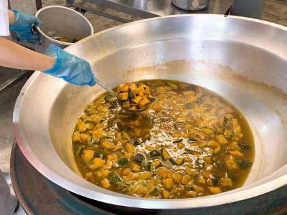 「かぼちゃのいとこ煮」は、だしでかぼちゃを煮て、砂糖、みりん、うすくちしょうゆで味付けし、あずきを加えて煮ていきます。