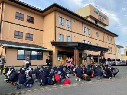 子どもたちは、本日の宿泊地に到着しました。開舎式では代表児童のあいさつの後、ホテルの方からごあいさつをいただきました。これから宿泊地での活動が始まります。