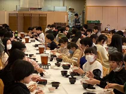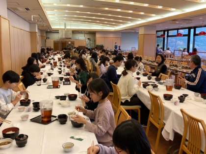 昼ごはんはレストランでいただきました。今日のメニューは「牛丼」です。合わせて食べる子、おかずにして食べる子。最後の食事を楽しみました。