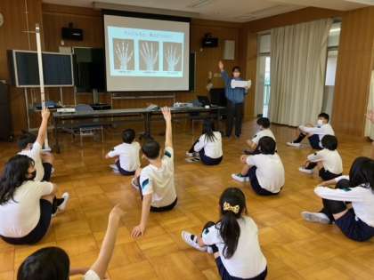 発育測定の前に「骨も生きているのかな?」というテーマで保健指導も行いました。
