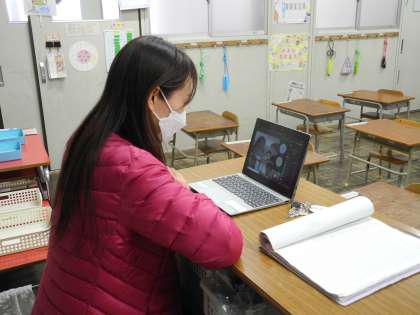 学校で学んだことを活かし、会議に参加し、カメラやマイクをオンにするなど、上手に端末を使いこなしていました。