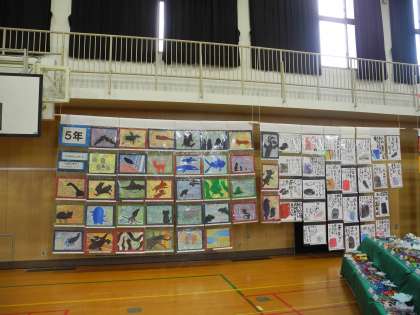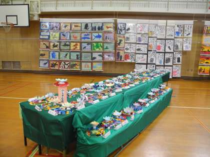 平面「アボリジニアート、心をこめて〜ランドセル・くつ〜」立体「ふしぎな花」