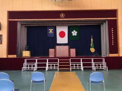 6時間目、5年生は力を合わせて卒業式の前日準備を行いました。その後、壇上にお花が生けられ、鉢植えも並べられました。少し天気が心配です。