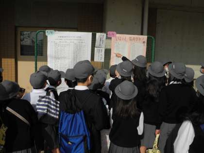 学校に、にぎやかな子どもたちの声がかえってきました。クラス発表の掲示を見ながら、歓声をあげるこどもたちです。
