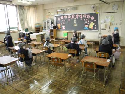緊張したようすの1年生ですが、自分のことは自分でやろうとするようすが見られました。がんばれー。