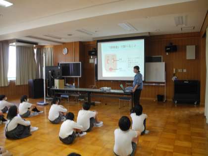 4,5,6月の健康診断に「どうして検診を行うのか,検診でどんなことを調べているのか…。」といった内容について、発育測定の前に説明をしました。