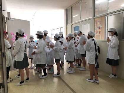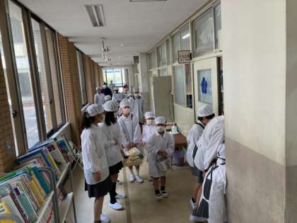 11日の給食開始から6年生が1年生の給食のお手伝いをしてくれています。