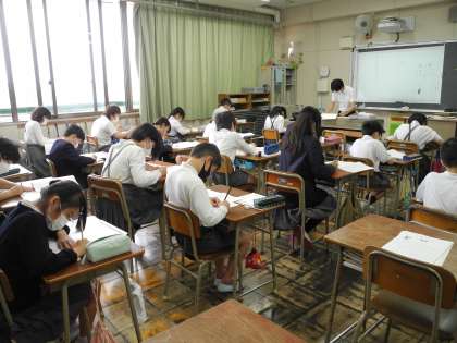 5年生と6年生が一生懸命にテストに取り組んでいました。