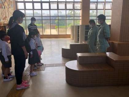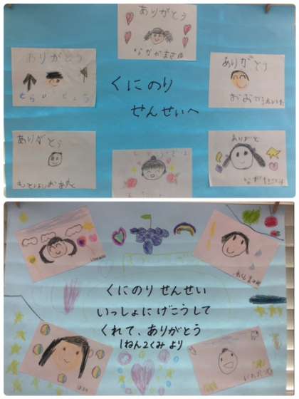 1年生が入学式翌日から下校時に付き添って貰った先生や管理作業員さんにクラスごとに感謝状を渡し、お礼を伝えました。
