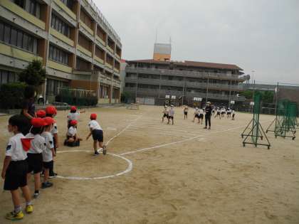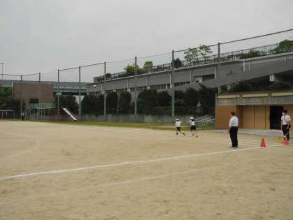 きょうは、2・4・6年生が運動場で50m走とソフトボール投げの記録をとっています。いい記録がでるように、一生懸命がんばっています。