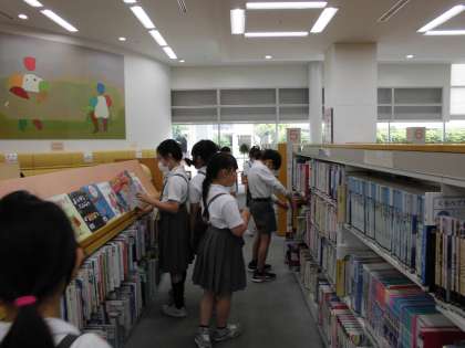 鶴見図書館に社会見学に行きました。施設内を見学したり、図書館の方のお話を聞いたりしました。いろいろな設備があることや、本の貸し出し以外にもたくさんのお仕事があることがわかりました。