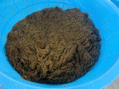 「もずくとオクラのとろり汁」は、もずく、オクラ、キャベツ、えのきたけ、たけのこを使用したとろみのある汁物です。もずくは、沖縄県でとれたものです。ビタミンや食物せんいを含んでいます。