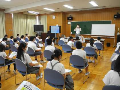 今日は、新聞社の出前授業がありました。新聞の役割や記事・見出しの書き方、インタビューの仕方などを学習しました。