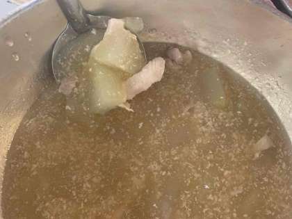 「とうがんの煮もの」は、固めに下ゆでしてから、しょうが風味をきかせただしで煮ています。