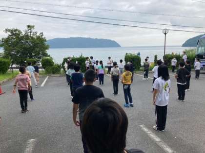 おはようございます。2日目の朝を迎えました。みんな元気です。全員で朝の集いを行いました。