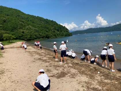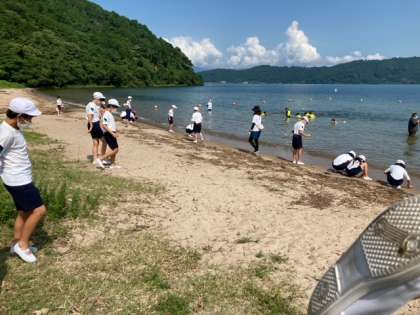 浜辺活動では、浜辺で思い思いのものを砂で作りました。また、琵琶湖のゴミを拾ってきれいにするクリーンキャンペーンにも取り組みました。